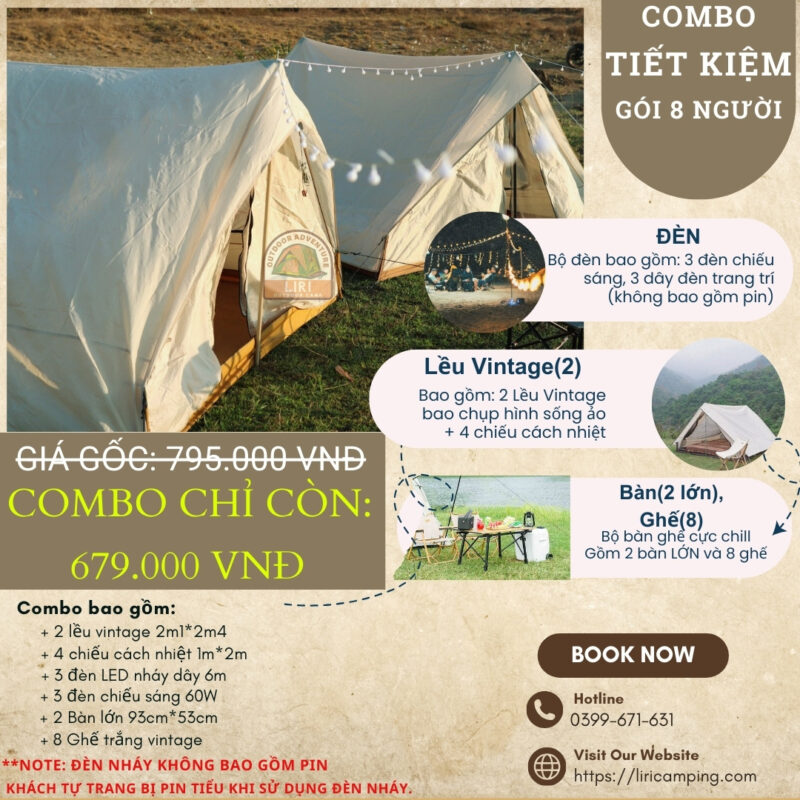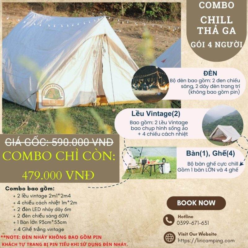 Các gói dịch vụ được LiRi setup đầy đủ, quý khách chỉ cần có mặt đúng giờ để nhận lều.